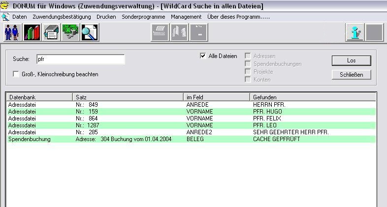 Mittels der Wildcard Suche können Sie einen Begriff über alle Datenbanken und Felder suchen lassen. Hier wird alles gefunden! |